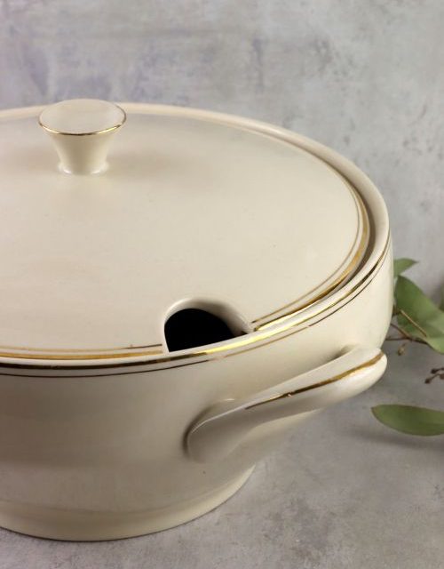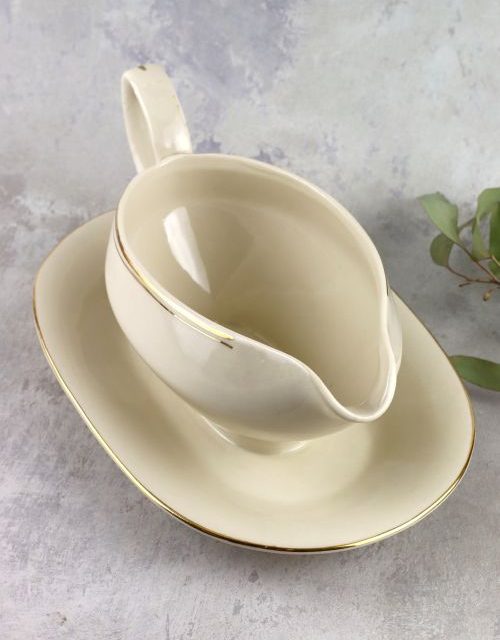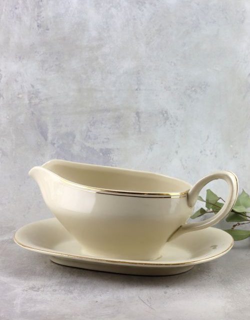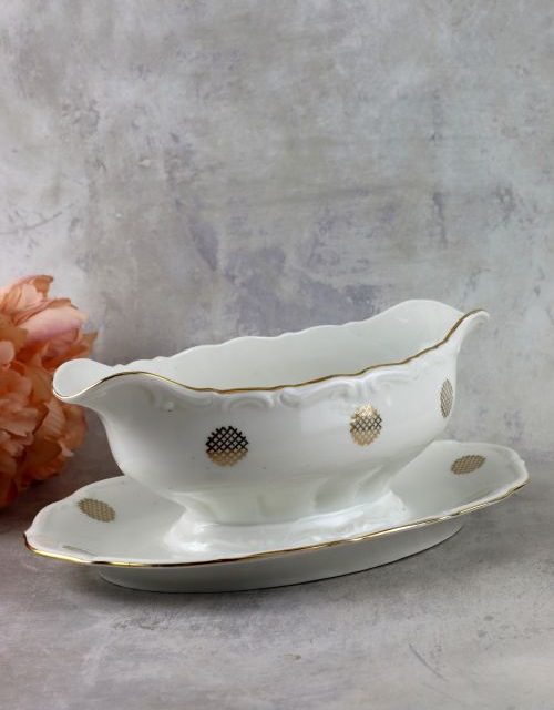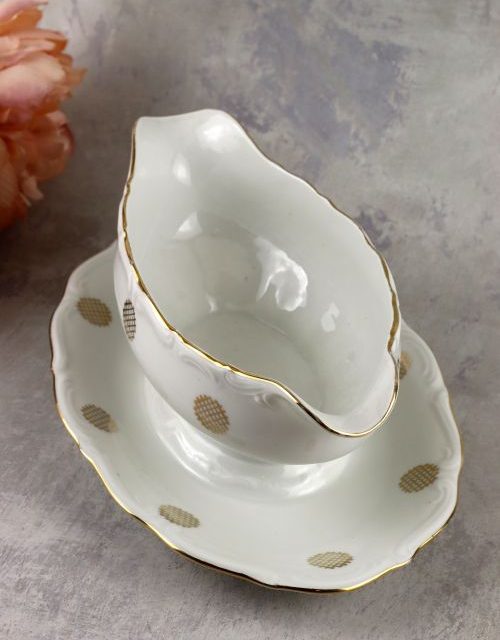 Kremowa sosjerka ze złotym dekorem – Chodzież