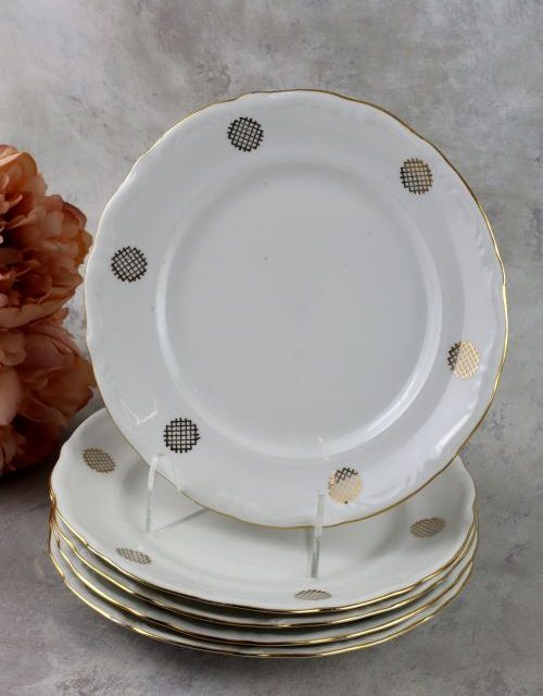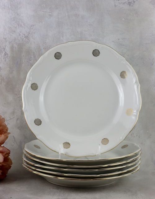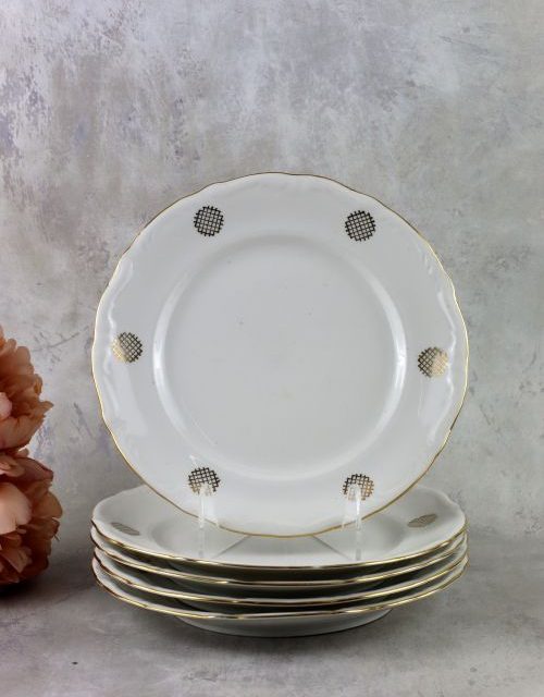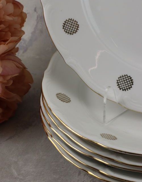 Zestaw talerzy obiadowych ze złotym dekorem – Bogucice
