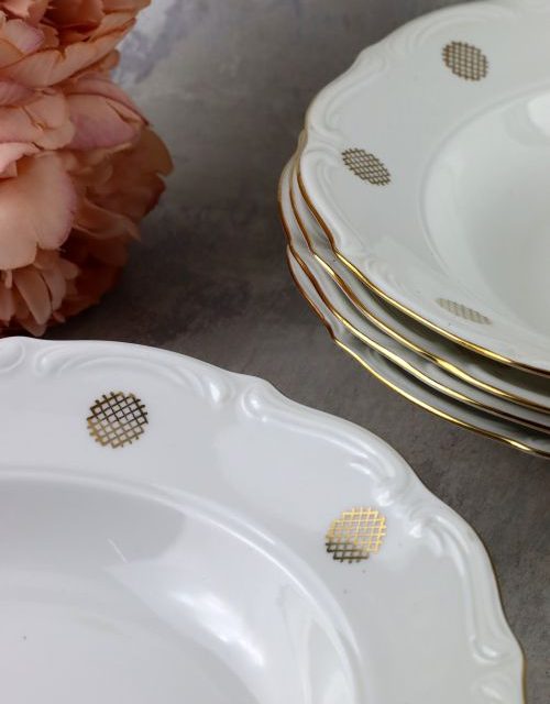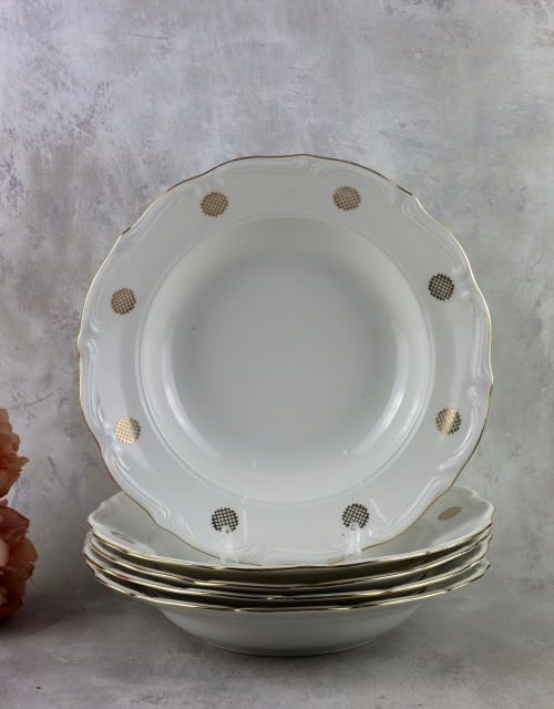 Zestaw głębokich talerzy ze złotym dekorem – Bogucice