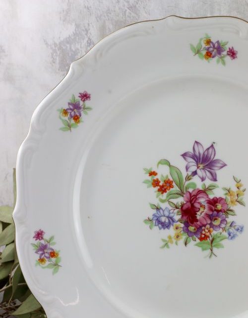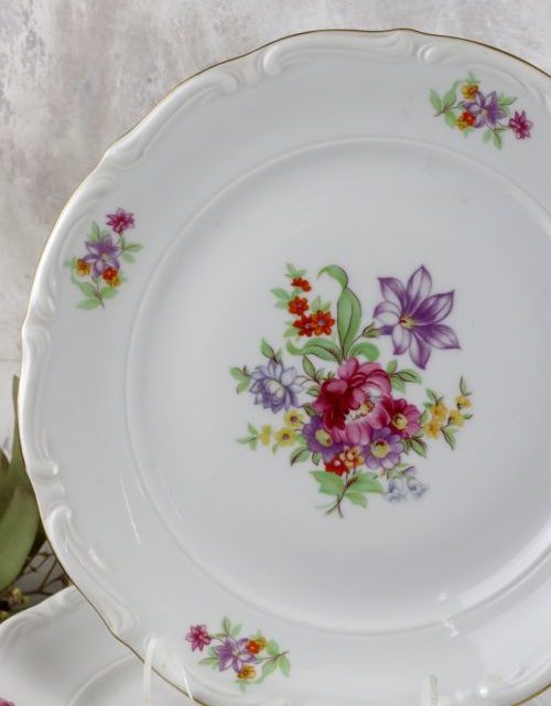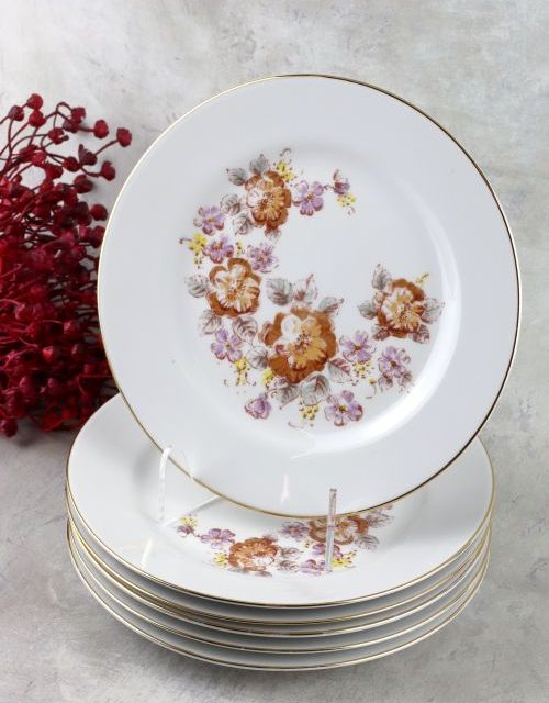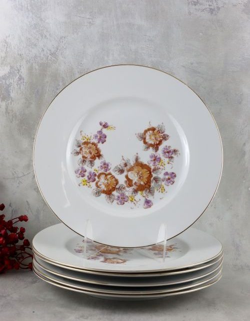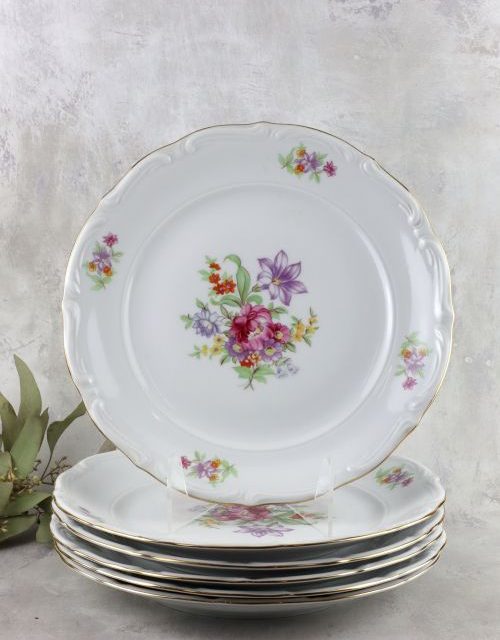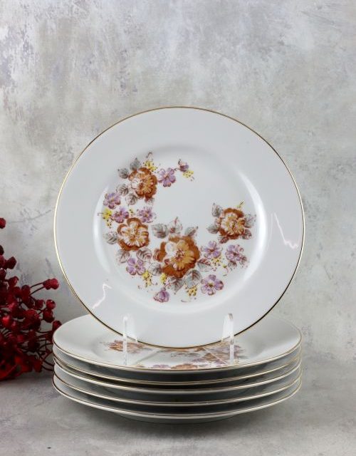 Zestaw talerzy obiadowych z motywem kwiatów – Wałbrzych