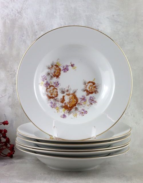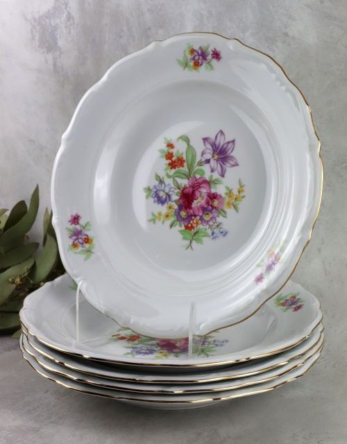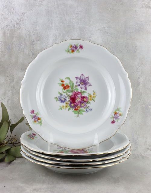 Zestaw głębokich talerzy z motywem kwiatów – Wałbrzych