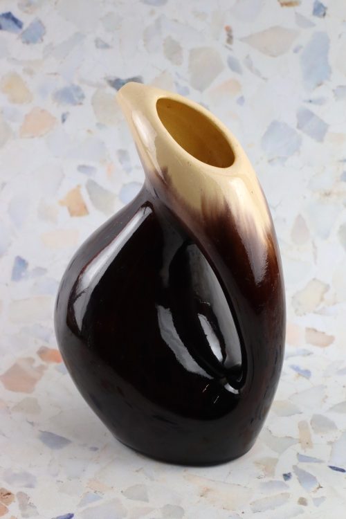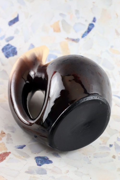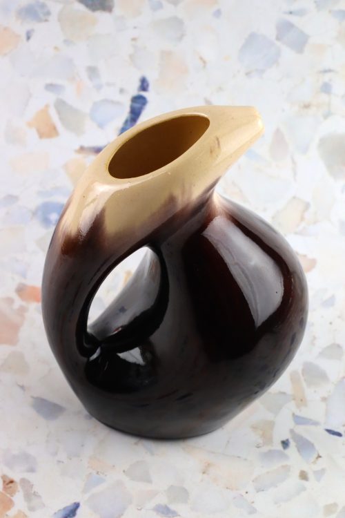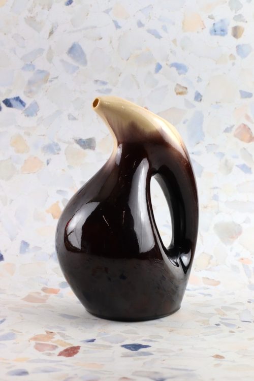 Ceramiczna karafka w ciemnym brązie i beżu wykonana w Spółdzielni Milenium.