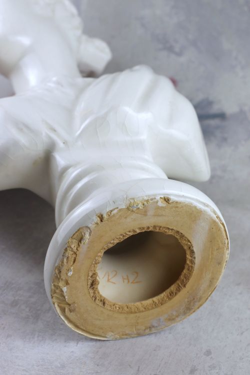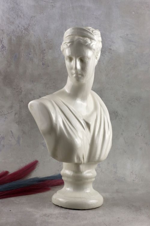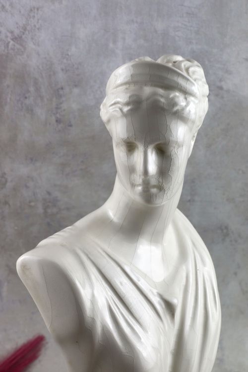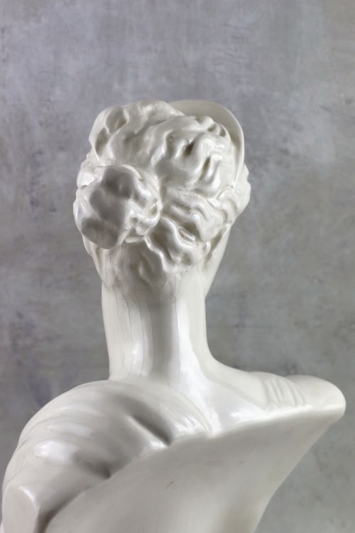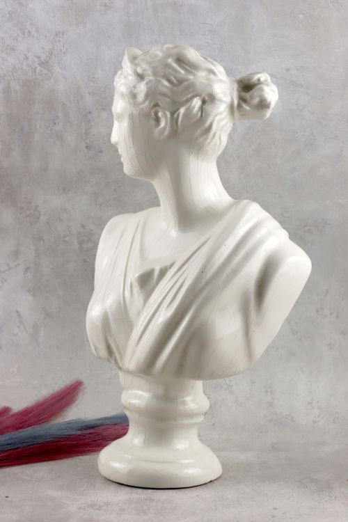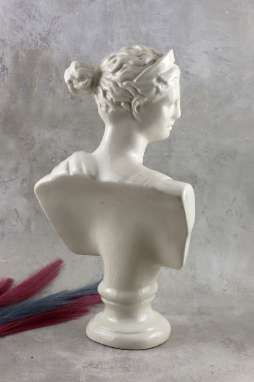 Ceramiczne popiersie Artemidy z białym szkliwem i dekoracyjną krakelurą.