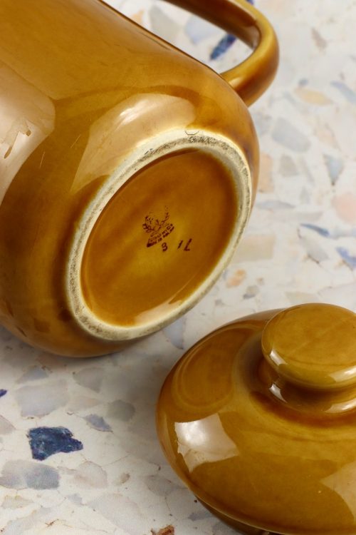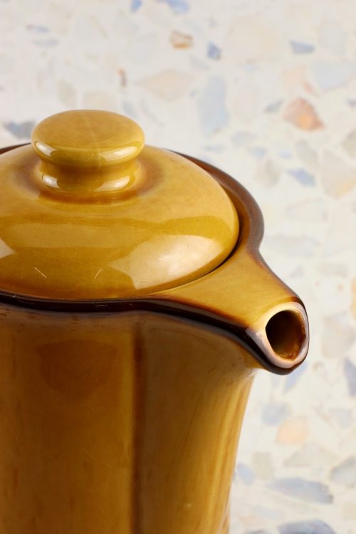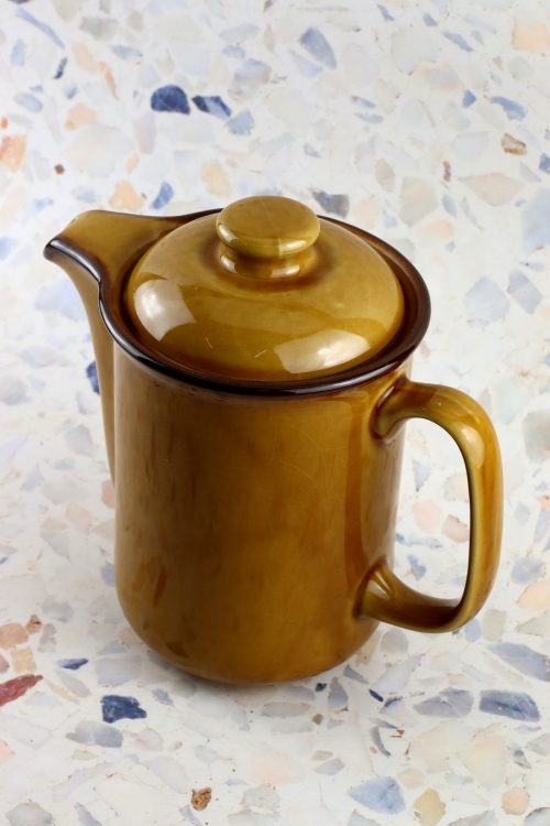 Ceramiczny brązowy dzbanek wykonany w zakładach Tułowice.
