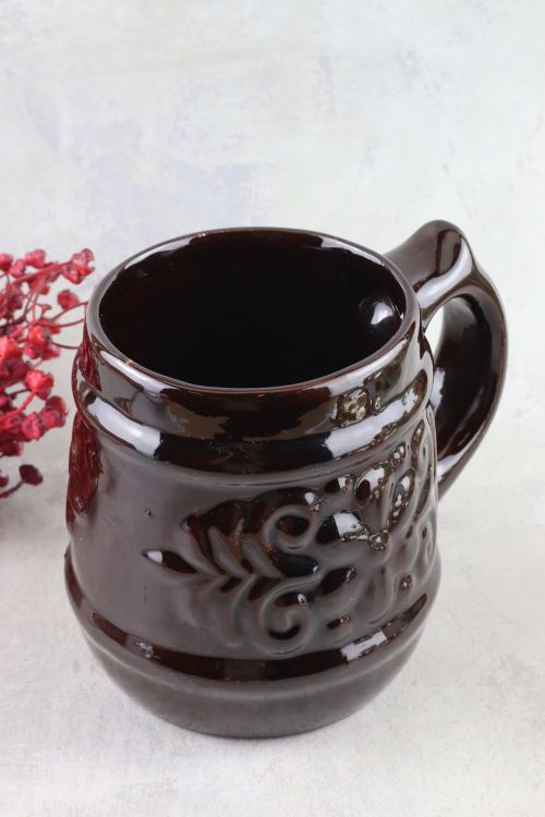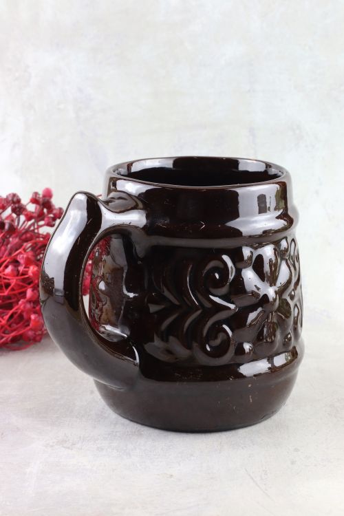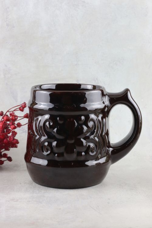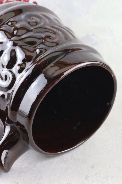 Stan dobry, ubytki szkliwa na krawędzi, zabrudzenia wewnątrz kufla.
