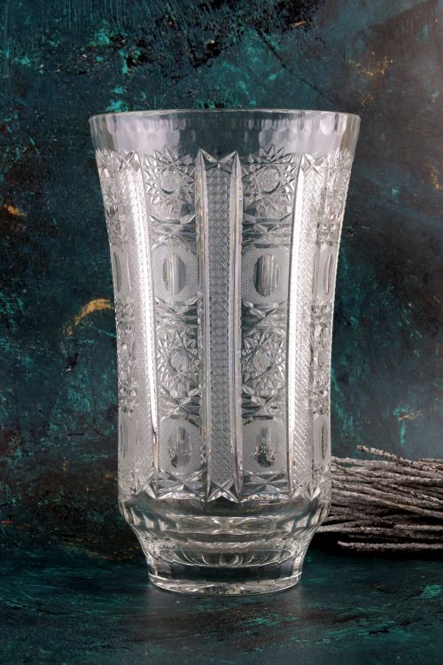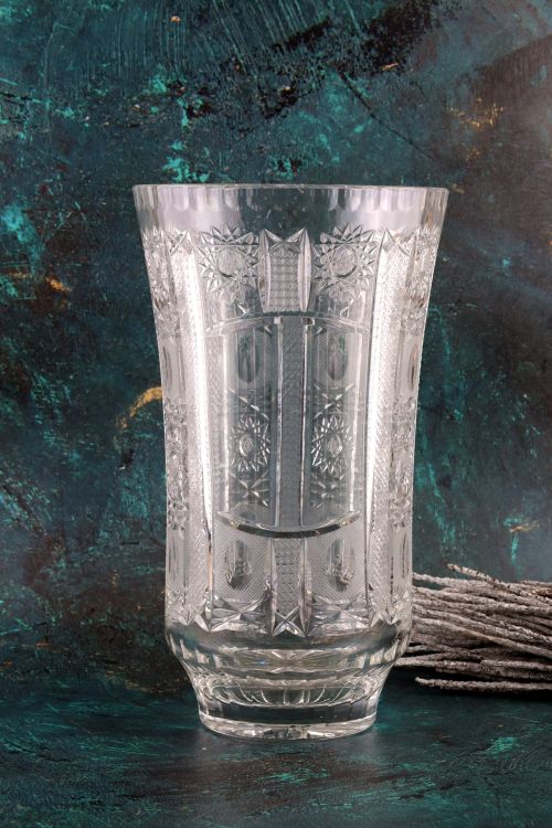 Duży kryształowy wazon z “okienkiem” do okolicznościowego graweru.