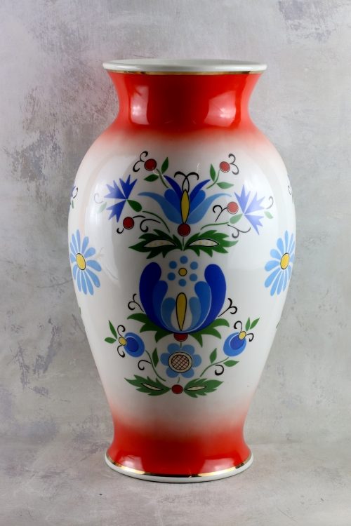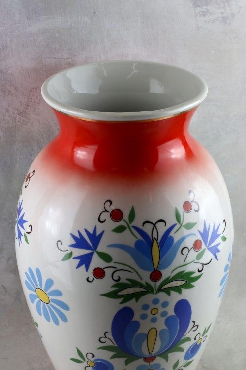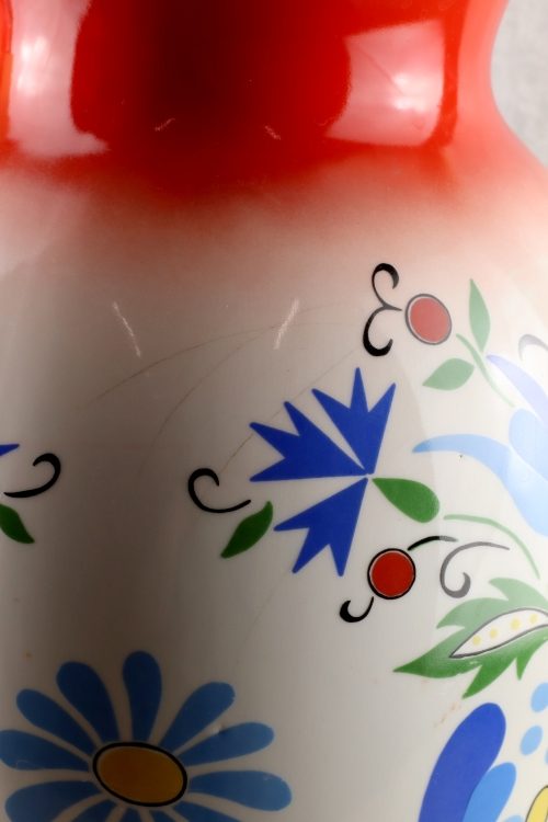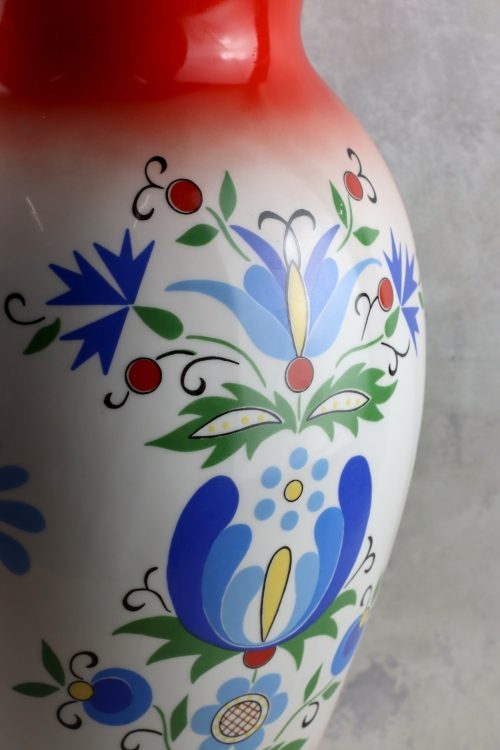Duży ceramiczny wazon z kaszubskim motywem wykonany w zakładach Lubiana.