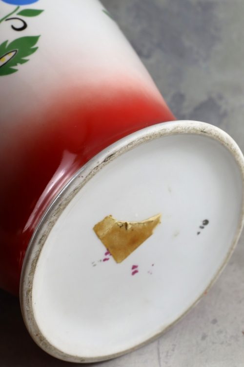 Stan bardzo dobry-, drobne ślady używania, przebarwienia, kilka rys na brzuścu wazonu.