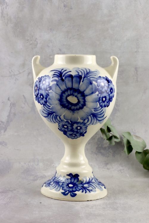 Fajansowa amfora z niebieską dekoracją wykonana w zakładach Koło.