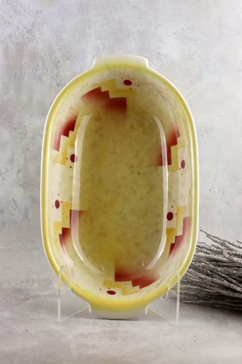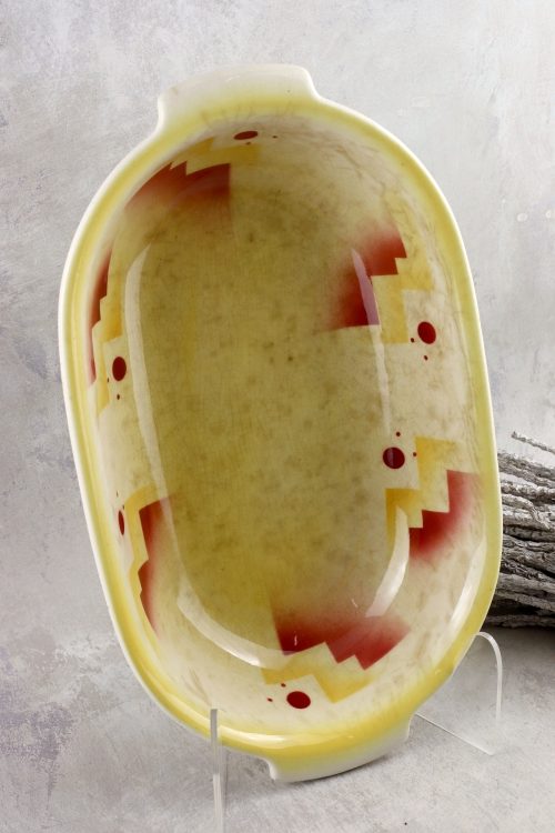 Fajansowe naczynie z dekoracją w stylu art deco.