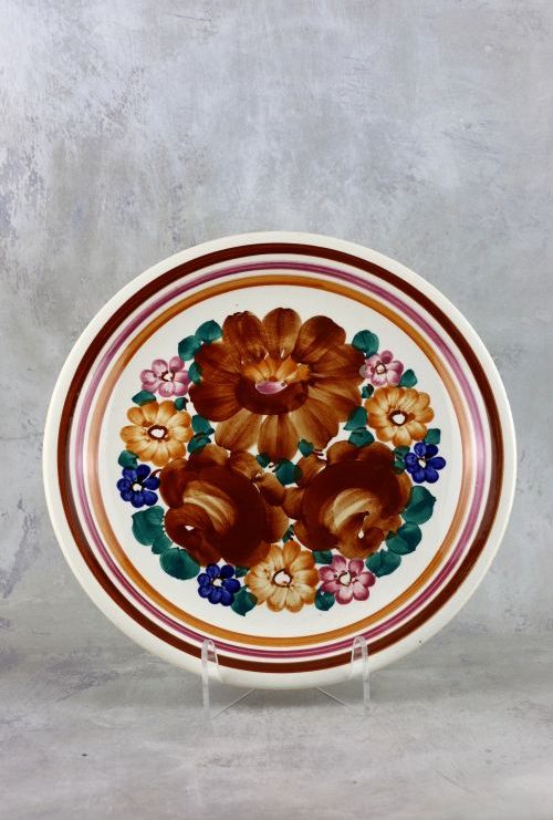 Fajansowy talerz z kolorową dekoracją – Włocławek