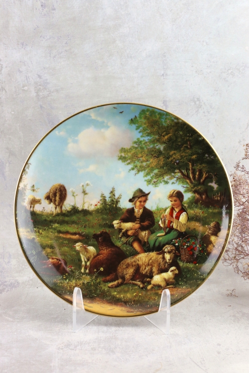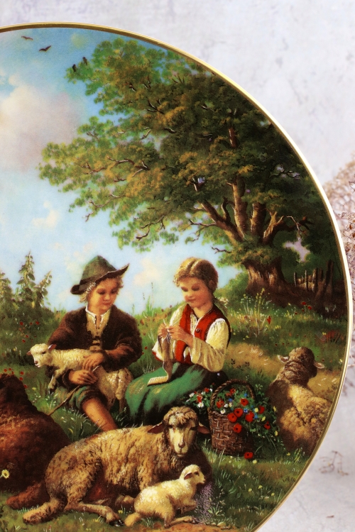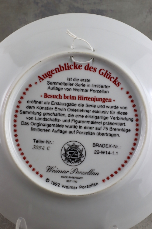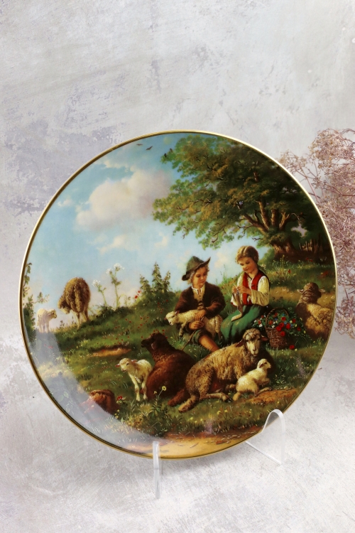 Kolekcjonerski talerz Besuch beim Hirtenjungen wykonany przez markę Weimar Porzellan.