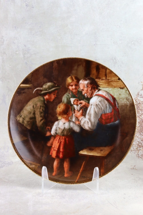 Kolekcjonerski talerz Die Puppenreparatur wykonany przez firmę Bareuther.
