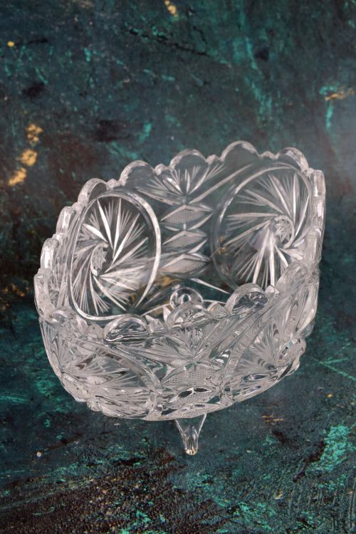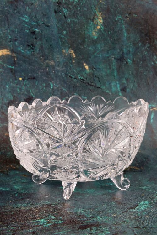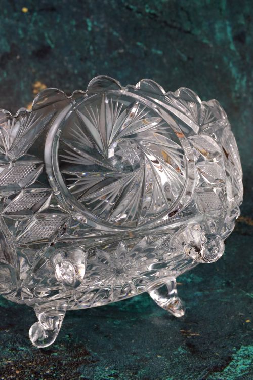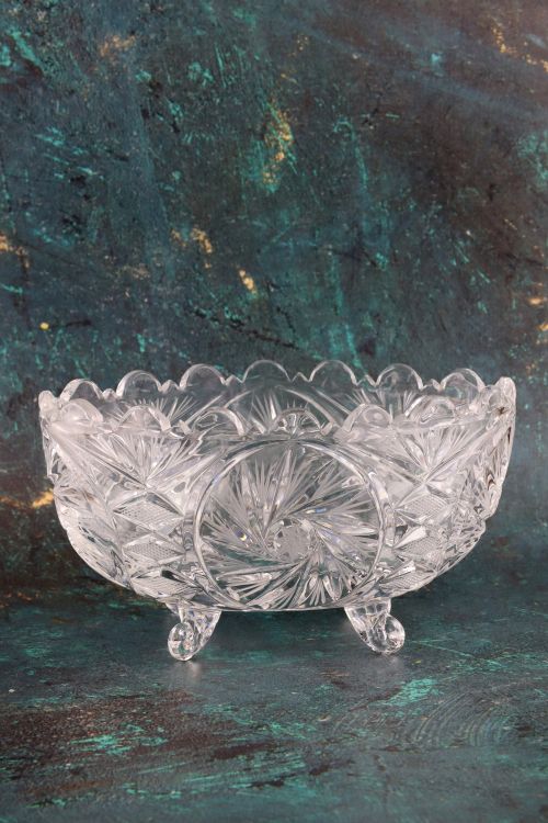 Kryształowa misa na czterech nóżkach.