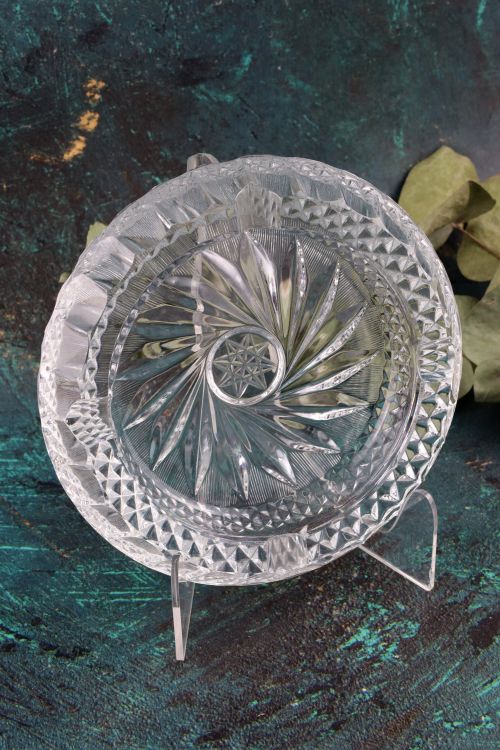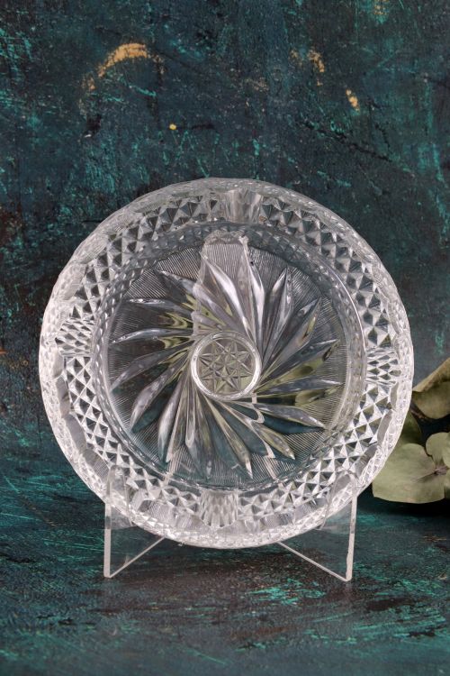 Kryształowa popielnica wykonana ze szkła bezbarwnego.