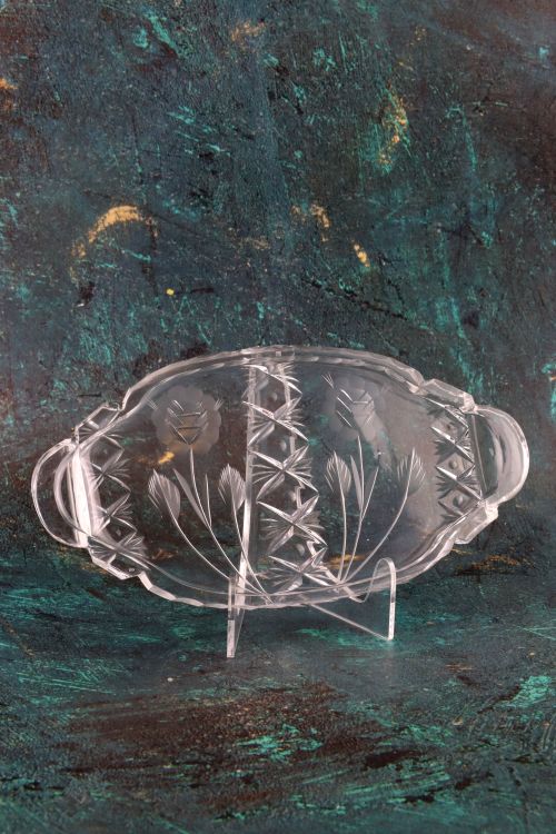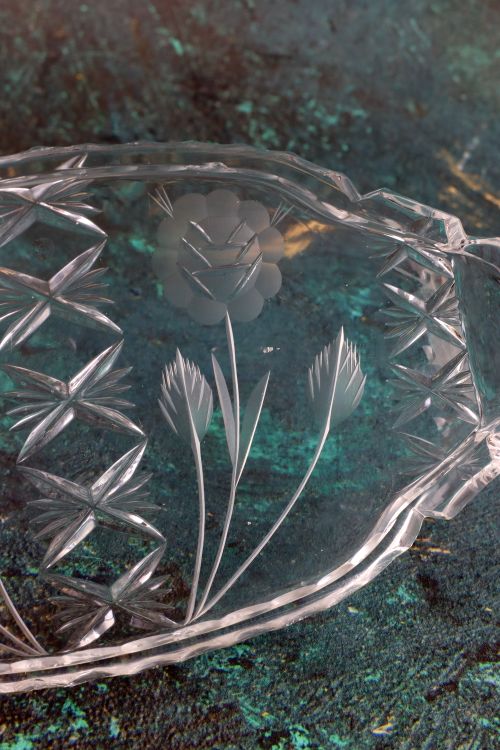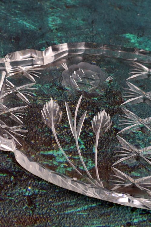 Kryształowa taca z kwiatami.