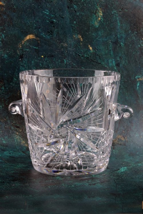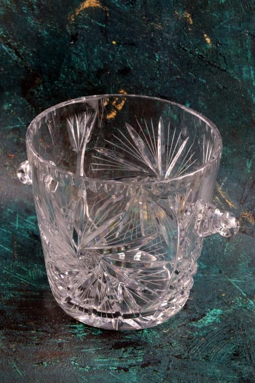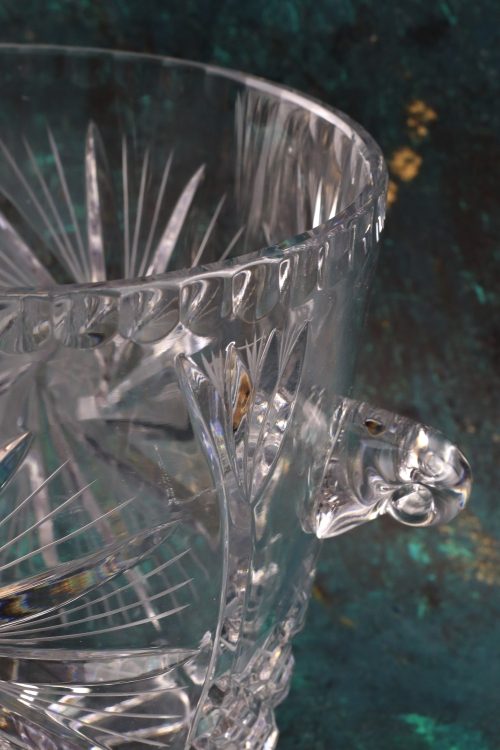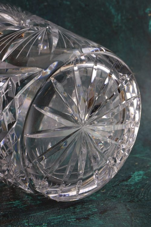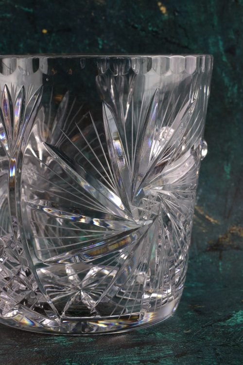 Kryształowy pojemnik z dużą rozetą.