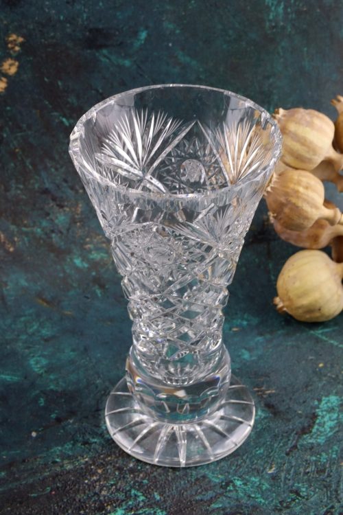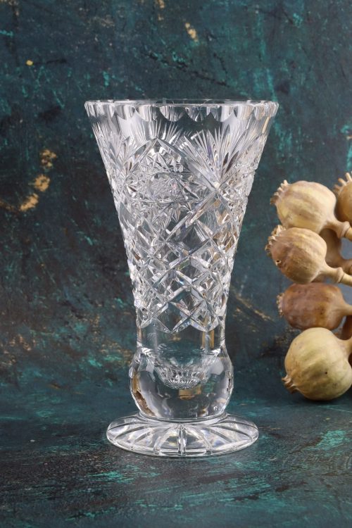 Kryształowy wazonik na stopie.