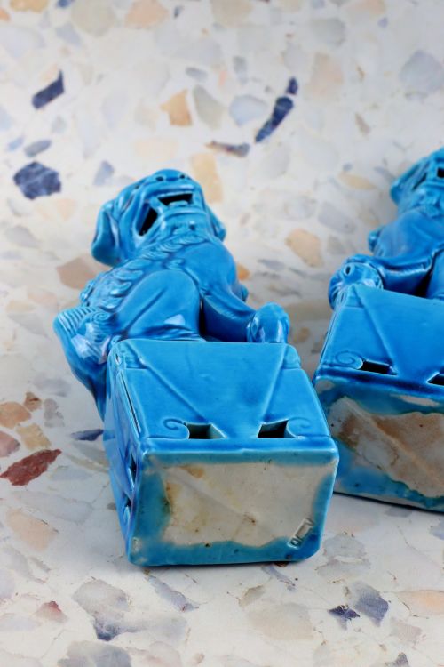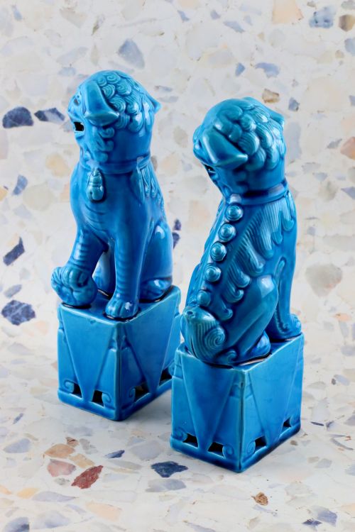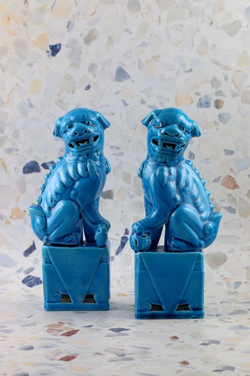 Para ceramicznych psów Foo w pięknym odcieniu turkusu.