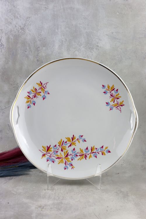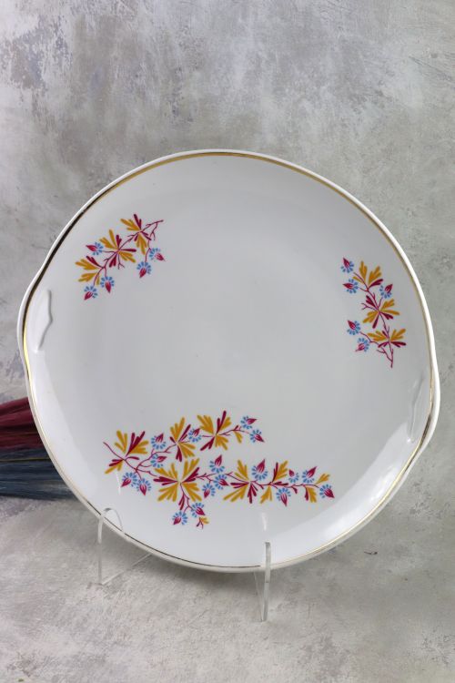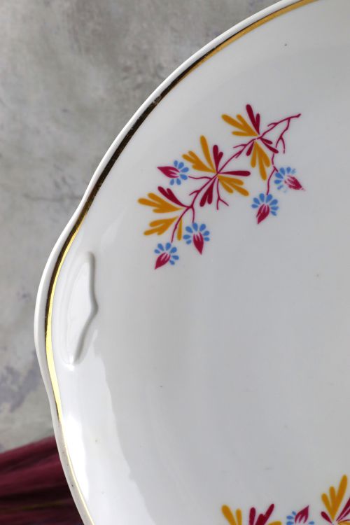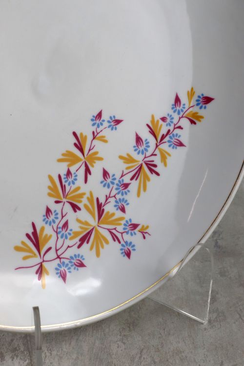 Patera z kolorowym kwiatowym motywem wykonana w zakładach Lubiana.
