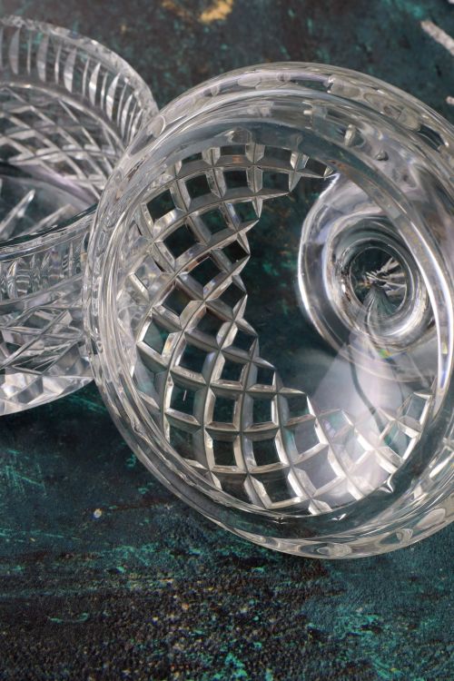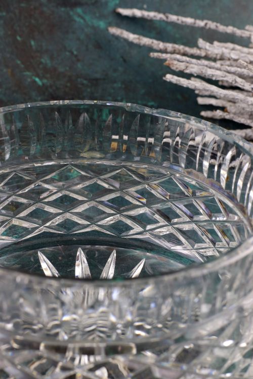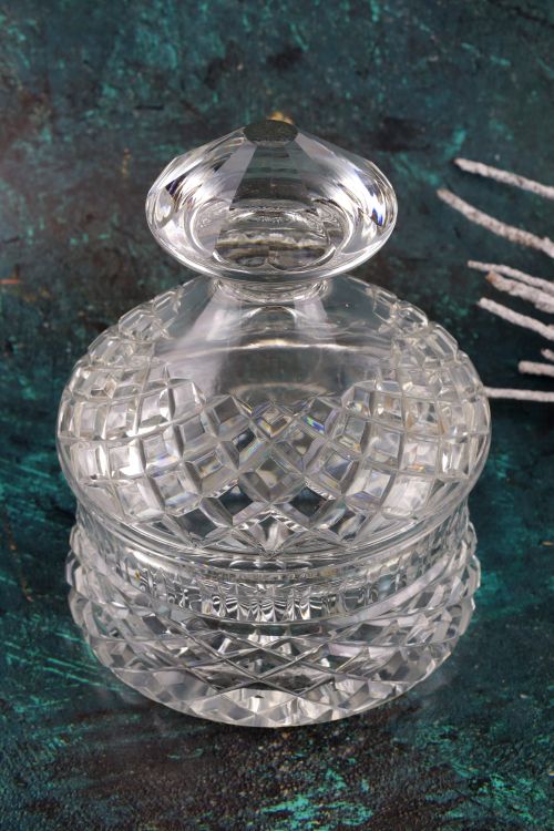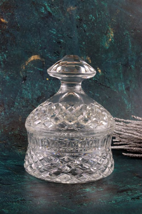 Pękata kryształowa bombonierka.