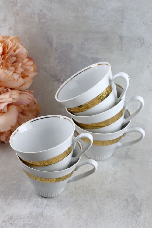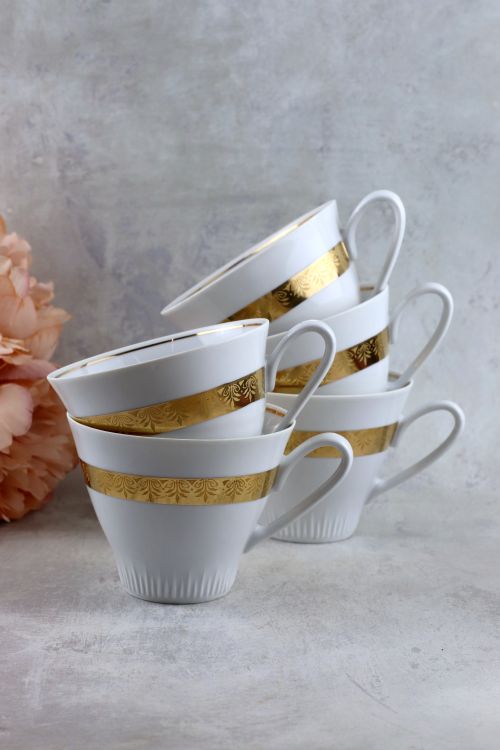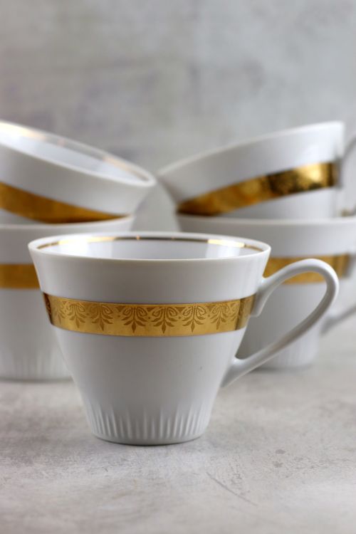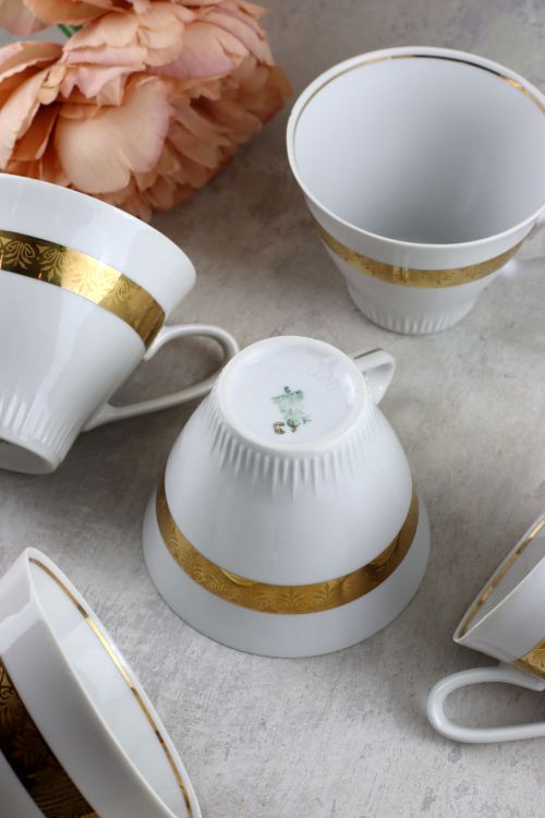 Porcelanowa filiżanka ze złotym dekorem wykonana w zakładach Włocławek.