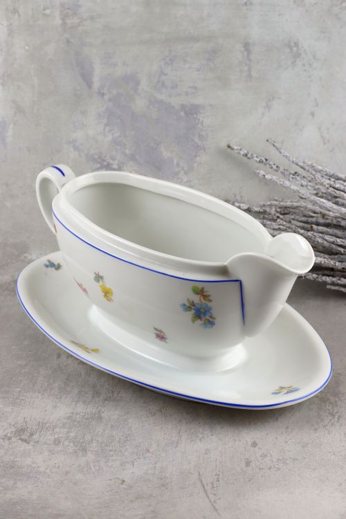 Porcelanowa sosjerka z kwiatowym motywem wykonana w Hucie Franciszka.