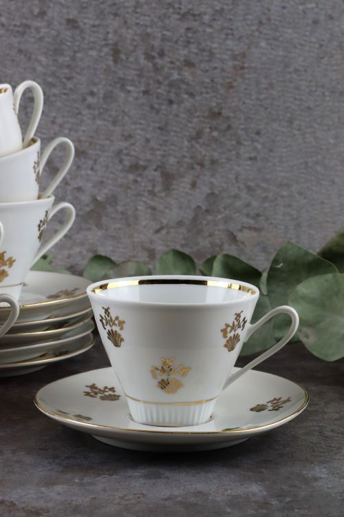 Porcelanowe duo ze złotymi kwiatkami wykonane w zakładach Ćmielów.