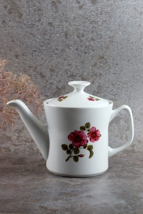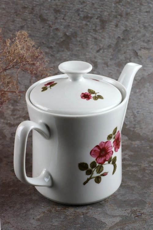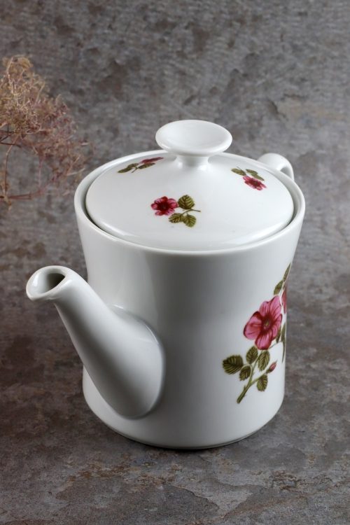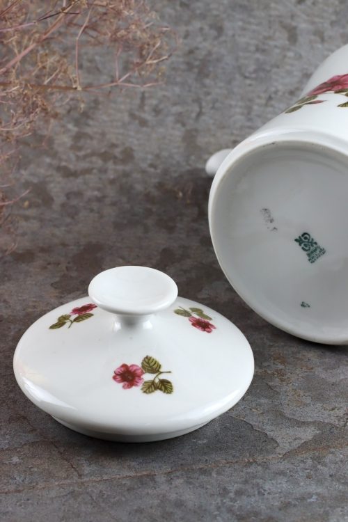 Porcelanowy imbryk z polną różą wykonany w zakładach Włocławek.