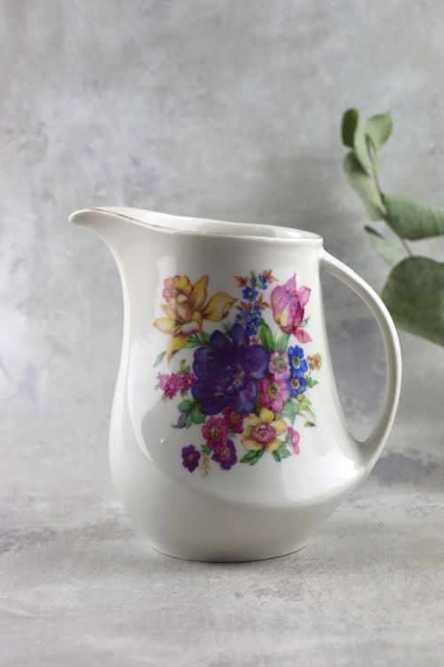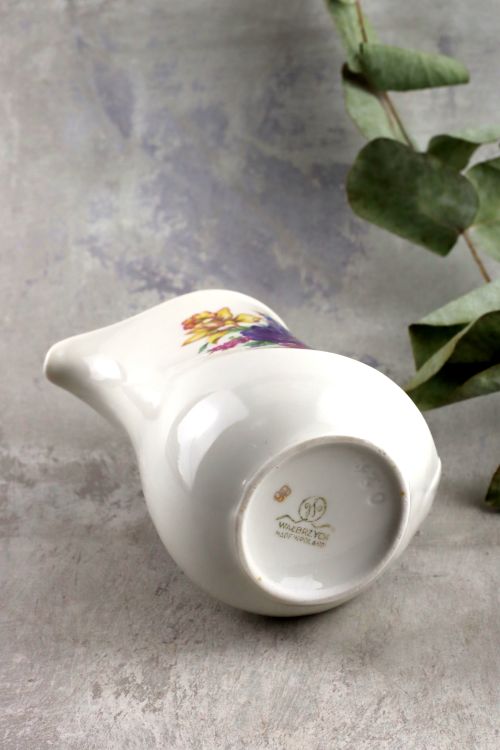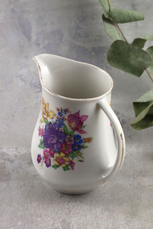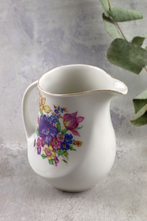 Porcelanowy mlecznik z kwiatowym motywem wykonany w zakładach Wałbrzych.