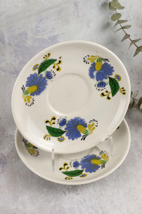 Spodki z porcelitu zdobione kwiatowym motywem, wykonane w zakładach w Chodzieży.