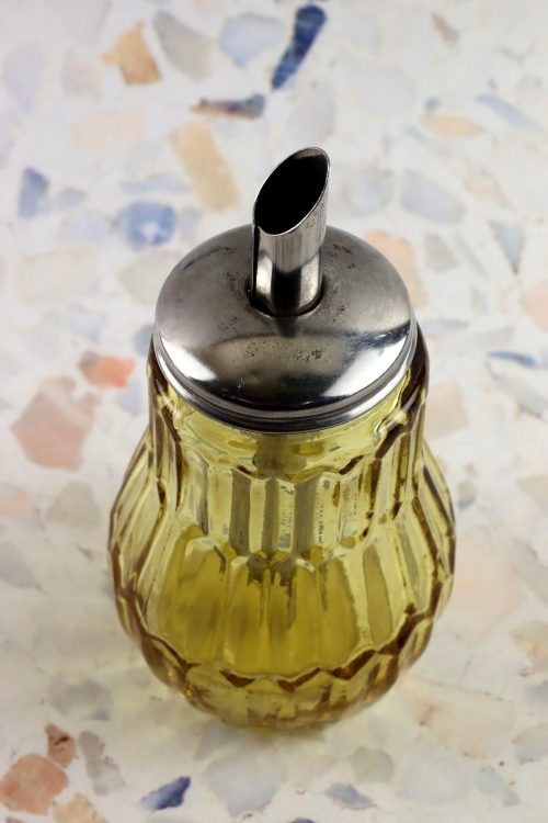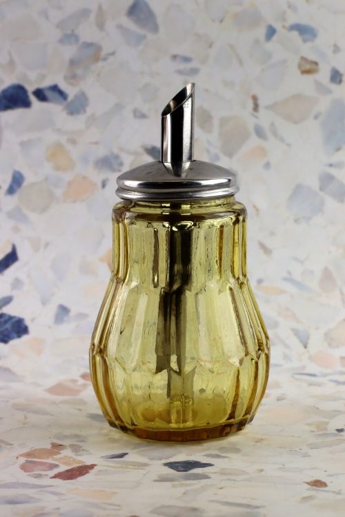 Szklana cukierniczka z dozownikiem w stylu vintage.