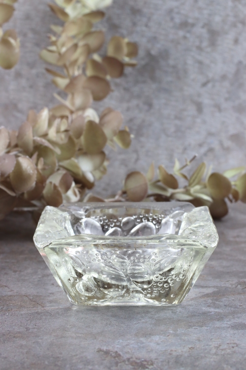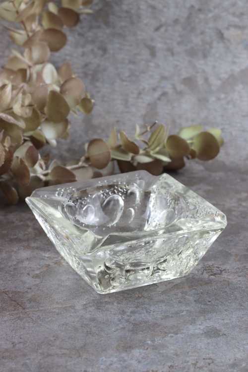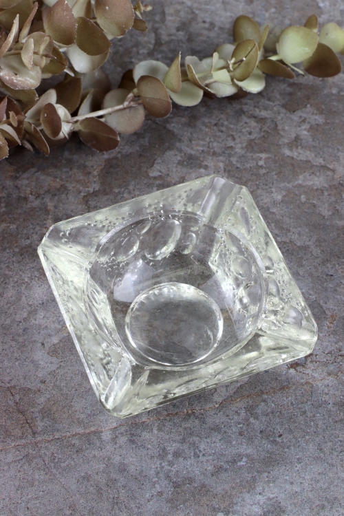Szklana popielnica h15-26 wykonana ze szkła prasowanego w Hucie Hortensja.