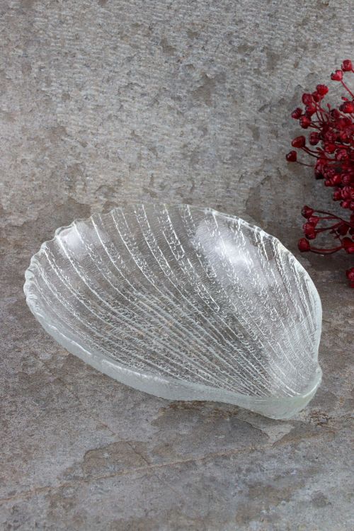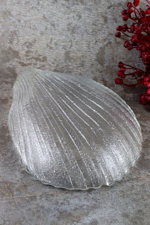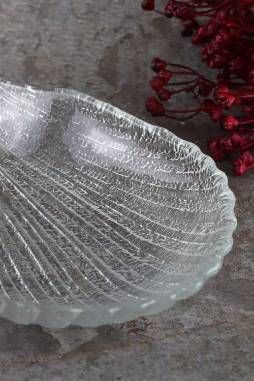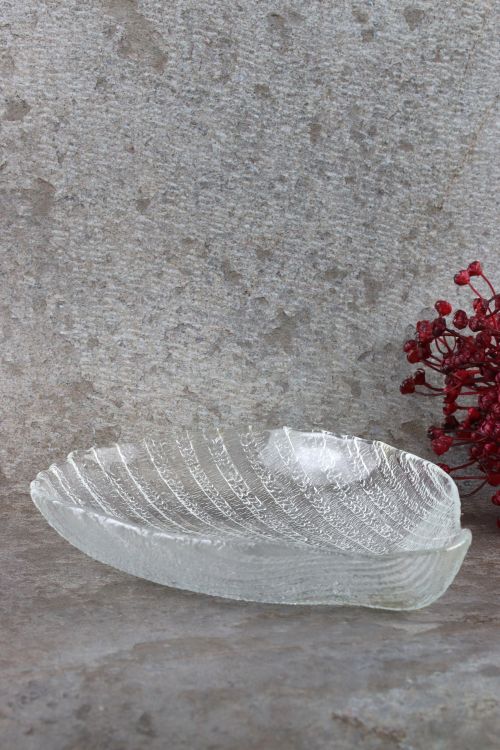 Szklana śledziówka muszla zaprojektowana przez Ludwika Fiedorowicza, wykonana w Hucie Szkła Gospodarczego “Ząbkowice”.