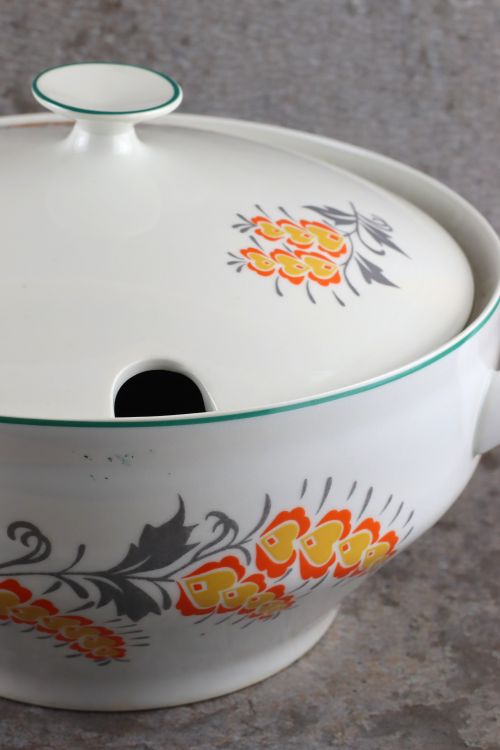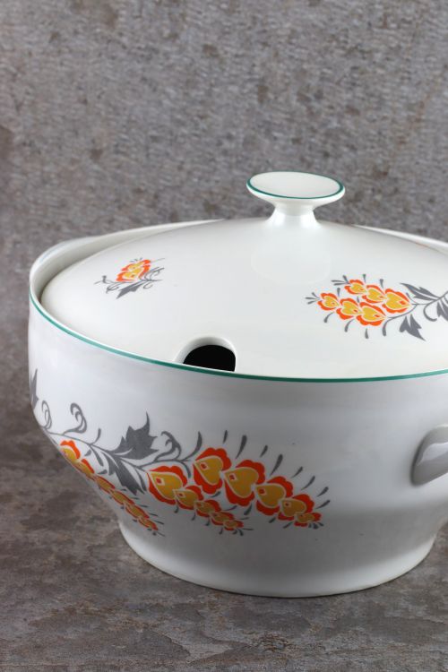 Waza z pomarańczowymi kwiatami wykonana w zakładach Włocławek.