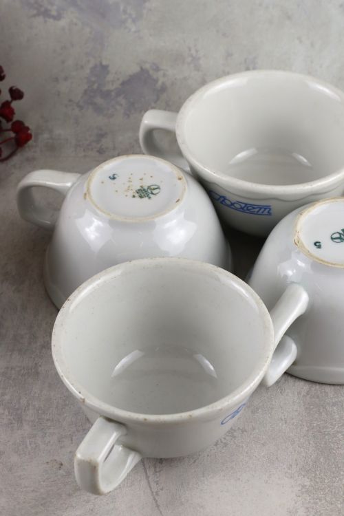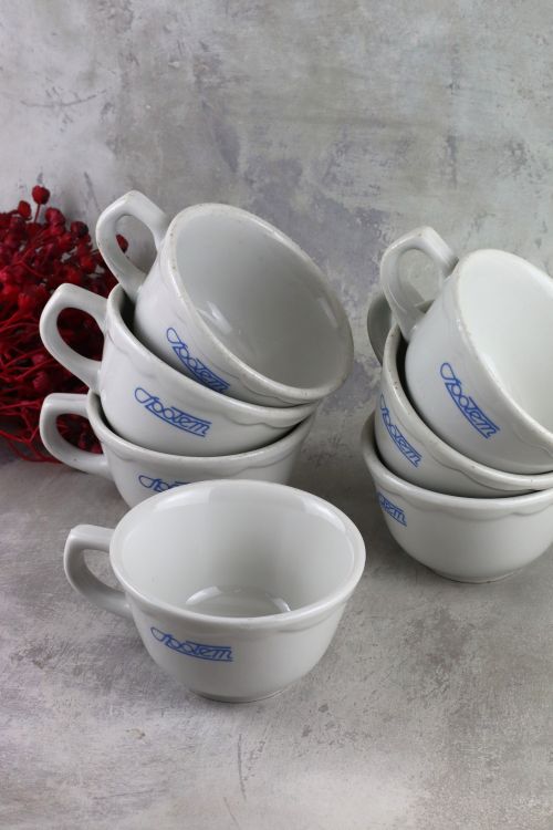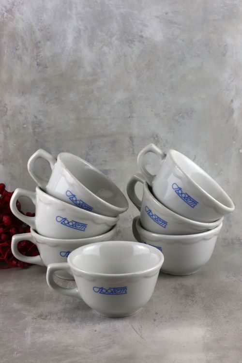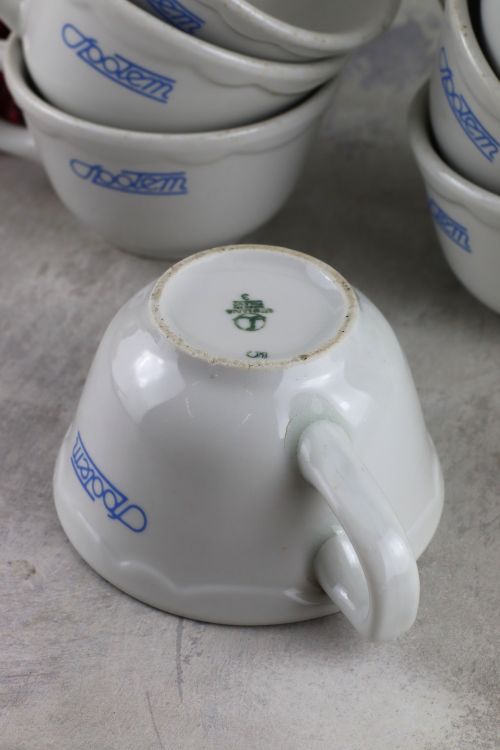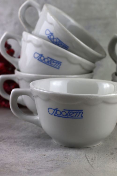Zestaw 7 filiżanek z logo Społem wykonana w zakładach Lubiana.