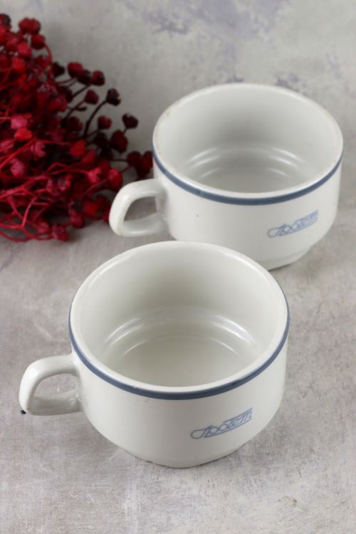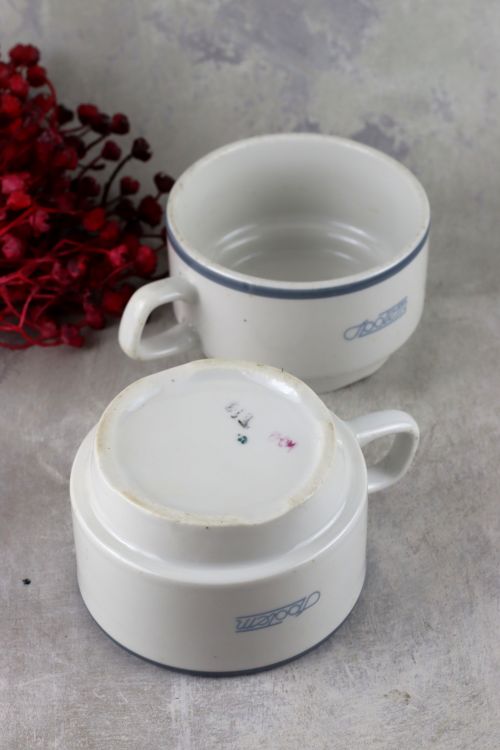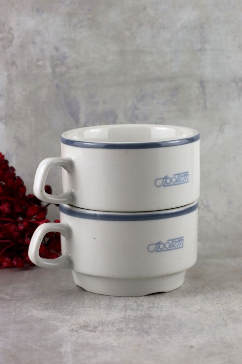 Zestaw dwóch kubków z logo Społem wykonanych w zakładach Lubiana.