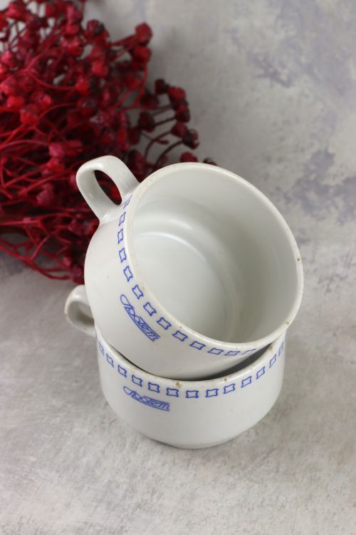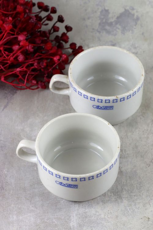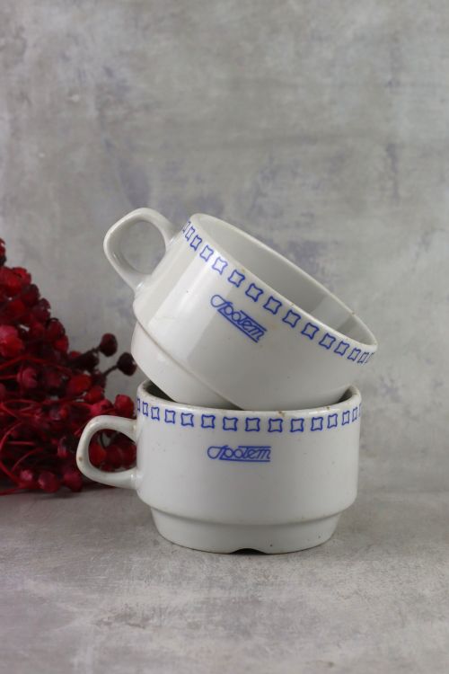 Zestaw dwóch kubków z logo Społem wykonanych w zakładach Lubiana.