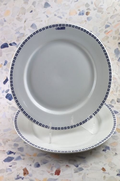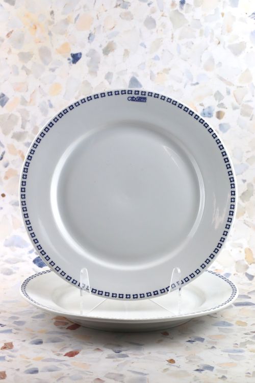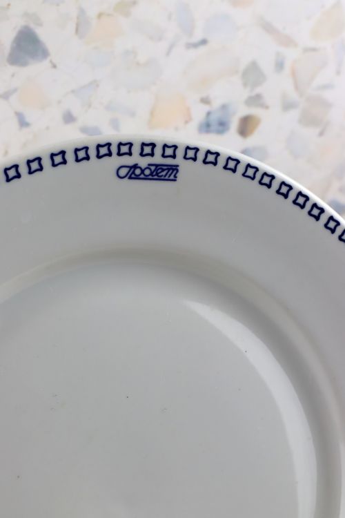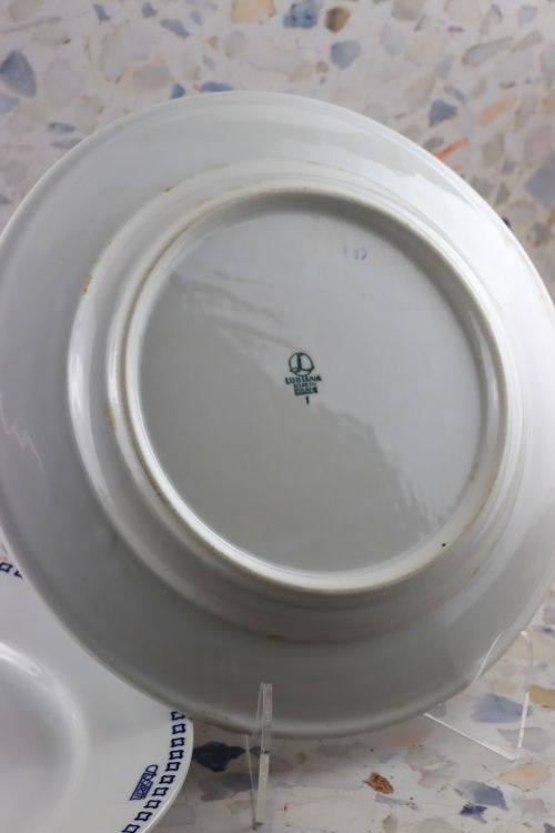 Zestaw dwóch talerzy z logo Społem wykonanych w zakładach Lubiana.