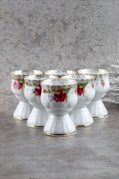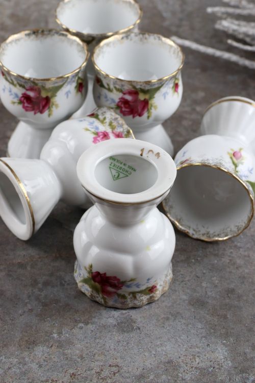 Zestaw sześciu kieliszków na jajka Iwona wykonanych w zakładach Chodzież.