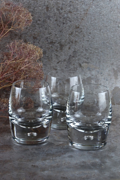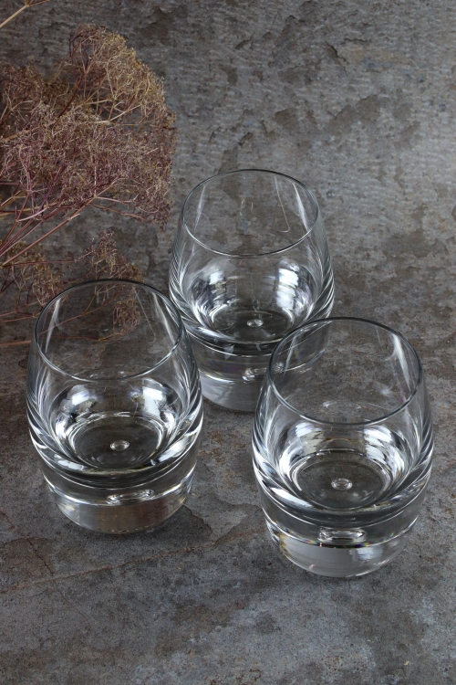 Zestaw trzech szklanek z masywnym dnem wykonanych w Hucie Szkła Krosno.