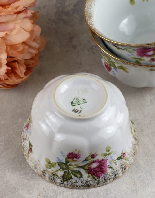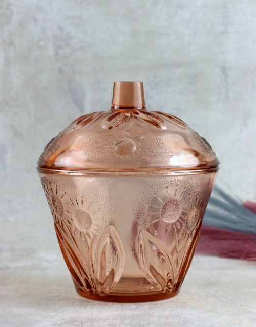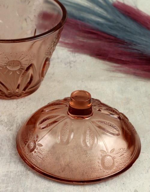 Rozalinowa cukiernica z kwiatowym motywem
