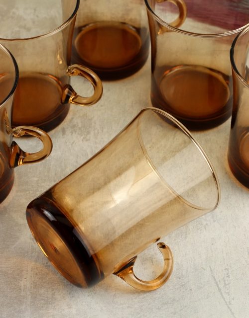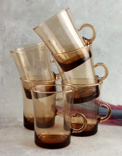 Zestaw łososiowych szklanek z uszkiem