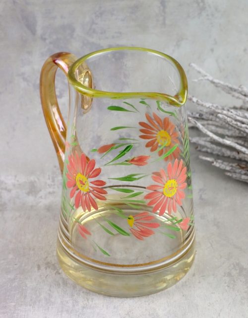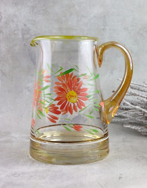 Szklany dzbanek z kwiatowym motywem
