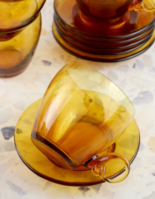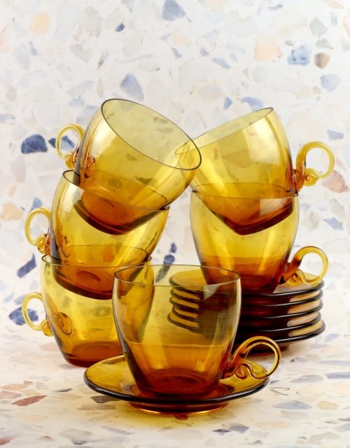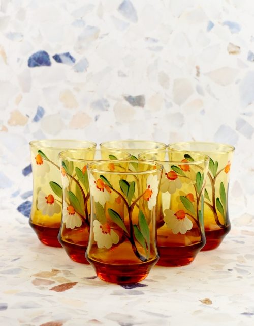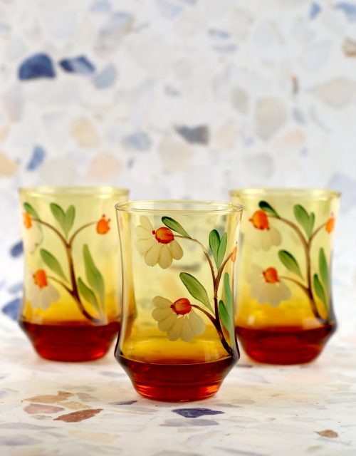 Zestaw miodowych szklanek z kwiatami – Huta Laura
